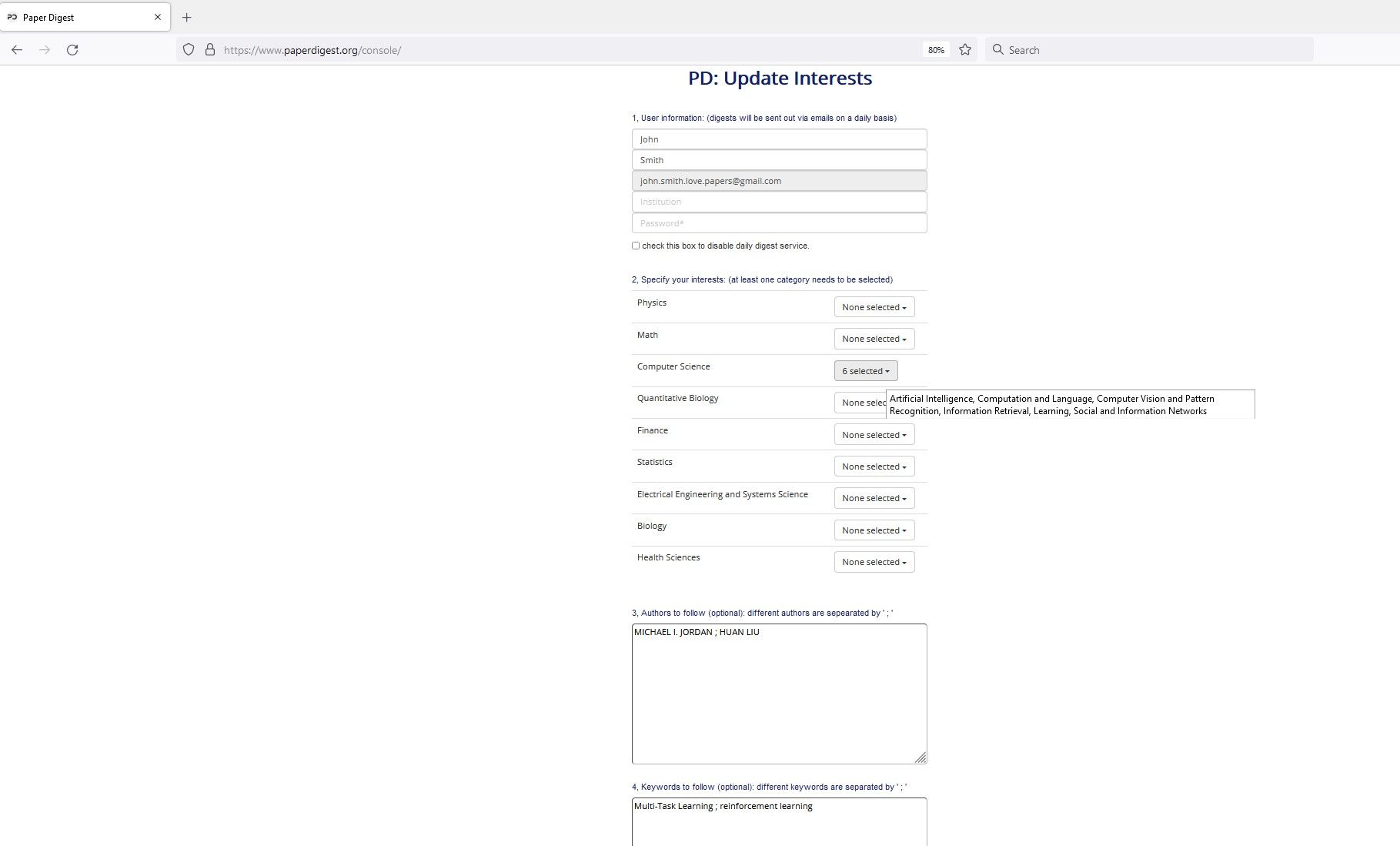 Papers focused specifically on the keywords and authors you follow.